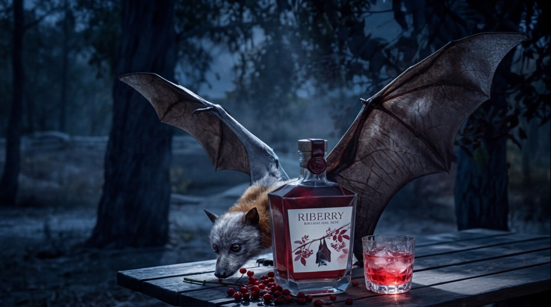 The flying fox at the top of this post? For a fictional gin brand I've been building called Riberry. That image would have cost thousands to produce as a real shoot — a licensed wildlife photographer, permits to work with a protected species, a creature handler, weeks of pre-production. Instead, I made it in an afternoon.